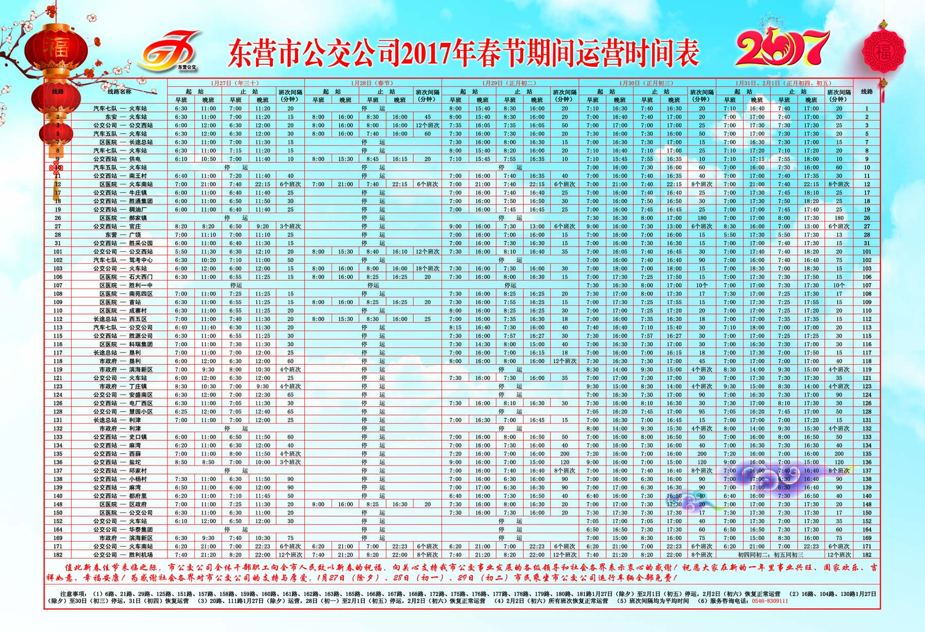 值此新春佳節(jié)來臨之際,市公交公司全體干部職工向全市人民致以新春的祝福,向關(guān)心支持我市公交事業(yè)發(fā)展的各級(jí)領(lǐng)導(dǎo)和社會(huì)各界表示衷心的感謝!祝愿大家在新的一年里事業(yè)興旺、闔家歡樂、吉祥如意、幸福安康!為感謝社會(huì)各界對(duì)市公交公司的支持與厚愛,1月27日(除夕)、28日(年初一)、29(初二)市民乘坐公交公司運(yùn)營車輛全部免費(fèi)!