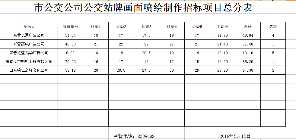 市公交公司公交站牌畫面噴繪制作招標(biāo)項目總分表