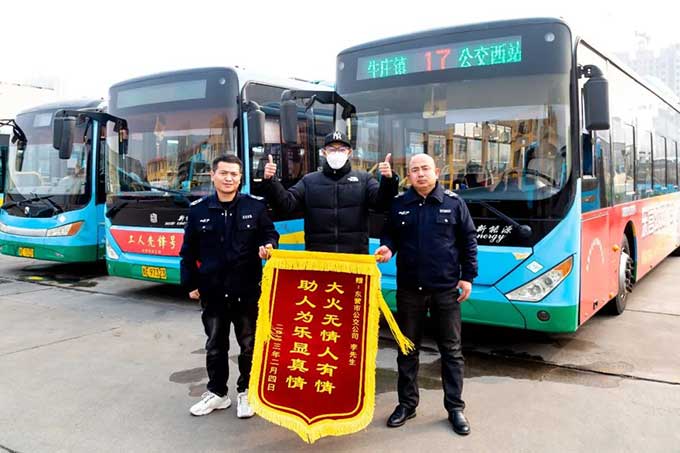 2023年2月7日下午,市民李先生來(lái)到市公交公司汽車三隊(duì),將一面剛剛定制的“大火無(wú)情人有情,助人為樂(lè)顯真情”的錦旗送到兩位駕駛員手中,向他們英勇救火的善行義舉表示感謝。