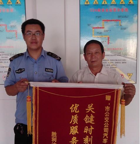 2012年8月16日,勝利油田長龍橡塑有限責(zé)任公司辦公室田主任拿著一面寫有“關(guān)鍵時刻見真情 優(yōu)質(zhì)服務(wù)品德高”的錦旗來到市公交公司汽車一隊,感謝車隊寧學(xué)峰師傅的高尚品德。