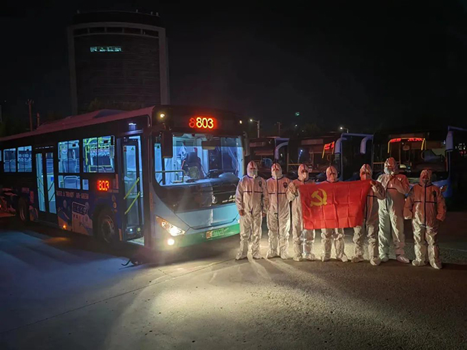 公司保修一廠副廠長商同衛(wèi)凌晨2點半被電話驚醒,“根據(jù)防疫工作需要,抓緊組織咱們的人員凌晨3點前到公司就位,改裝轉(zhuǎn)運車輛”,電話那頭傳來的是保修一廠負責人的聲音。商同衛(wèi)連忙從床上爬起來趕往公司,路上不停打電話通知其他同事,半個小時后保修一廠人員全部到位,他們與同樣接到任務的保修二廠的同事們一起,連夜完成了300臺公交車物理隔離改造,確保了車輛全部到達隔離轉(zhuǎn)運條件。與此同時,各車隊微信群也熱鬧起來?!耙咔楫斍埃军h委號召連夜組建應急轉(zhuǎn)運隊伍,請大家根據(jù)個人家庭實際情況報名接龍”,這段話在公司各車隊的微信工作群一經(jīng)發(fā)出,就迅速得到了回應,也許是9月29日晚個別小區(qū)的封控讓大家提前感受到了疫情緊張的氣氛,此時雖已凌晨,但很多同志并未入睡。“隊長,我第一個報名”“我是黨員我先上”“算我一個”,大家紛紛響應公司黨委號召,踴躍報名。很快,由東、西城各車隊300名駕駛員和300臺完成物理隔離改裝的公交車組成的應急轉(zhuǎn)運隊伍9月30日早6時前就組建并按區(qū)域集結到位。